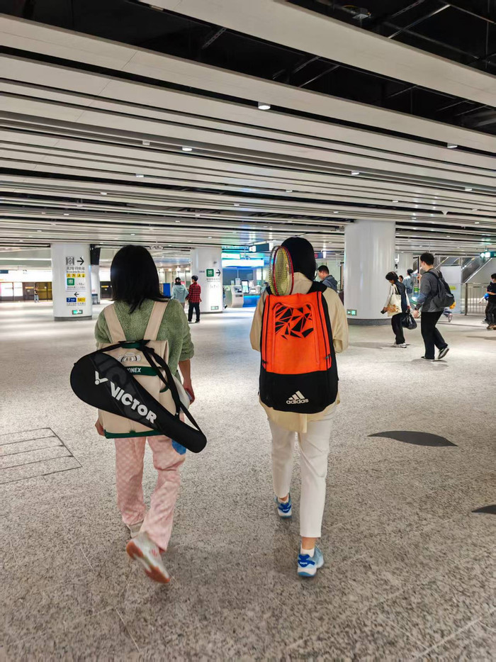 同样来自香港的林小姐与校友背着羽毛球装备,一起从福田口岸赶往深圳体育中心。“昨天是团体决赛,我们看了一整天,因为周六、周日的票我们买不到,所以今天就订了场地,不如自己打个痛快。”黄小姐说,她有一个朋友更加喜欢乒乓球和网球,“这几天,总是看到她白天在澳门在乒乓,晚上又跑到珠海看网球,真是太令人羡慕了。广东这边深圳、珠海、广州这些大城市包括一些小城市,运动氛围都很浓厚,我想以后经常过来动一动,玩一玩。”