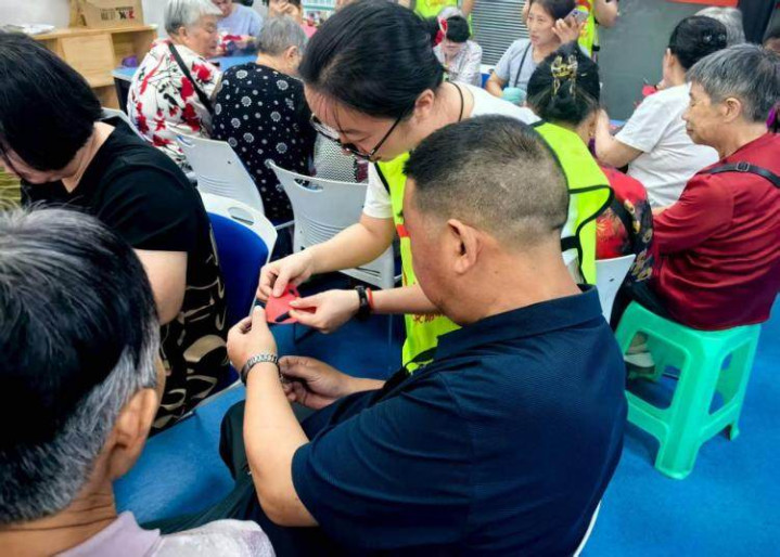 紧接着,剪纸活动正式拉开帷幕。志愿者向大家详细介绍各类剪纸工具、材料及基础手法,并现场进行示范。在志愿者的引导下,大家兴致勃勃地拿起剪刀与红纸,专注创作。不一会儿,一幅幅精美的剪纸作品便在大家的巧手下诞生了。剪纸作品中有象征着吉祥如意的花鸟图案,有寓意着幸福美满的人物造型,还有展现团结友爱精神的集体场景,每一件作品都凝聚着大家对美好生活的向往与追求。最后,社区工作人员为每位参与者送上了纪念小礼品。